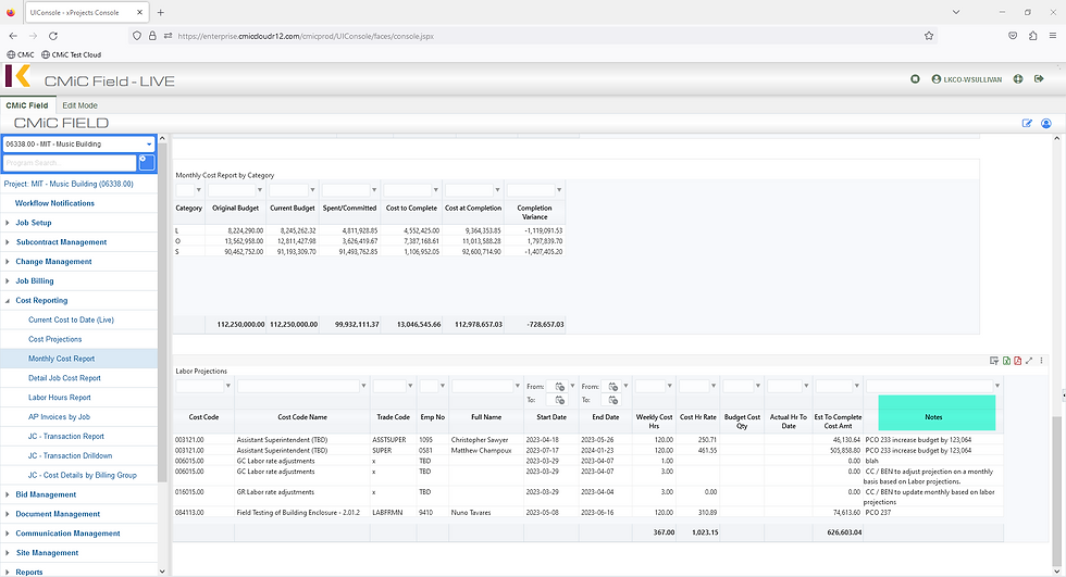 The cost report has been updated to break out spent/committed to spent and remaining committed to as it was before in both Viewpoint and Procore.